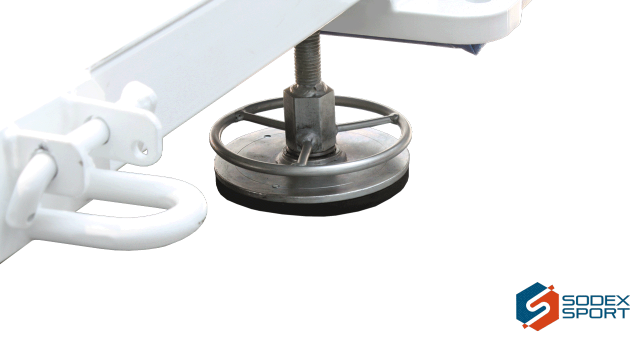 The pedestal feet are fully adjustable in order to compensate possible court irregularities |