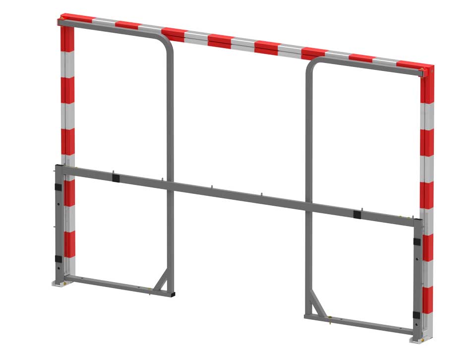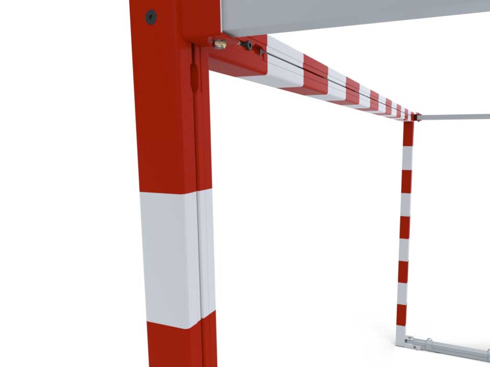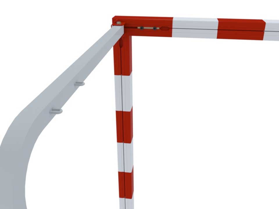 - Dimensions : 3.0m x 2.0m. - Painted red/white (no adhesive). - Frame in aluminium 80x80mm. - With foldable aluminum arches and link bar in pipe 60x30mm and 40x40mm. - Delivered with anchoring accessories. - Corner joints are welded directly onto the uprights. | ![]() |
