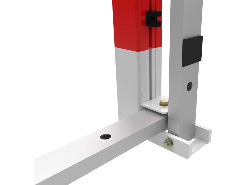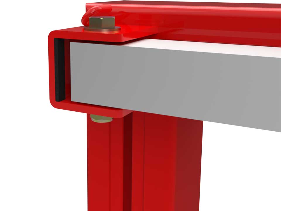 Front frame is 3m x 2m in square section 80mm aluminium, red-white powder coated (other color on request).