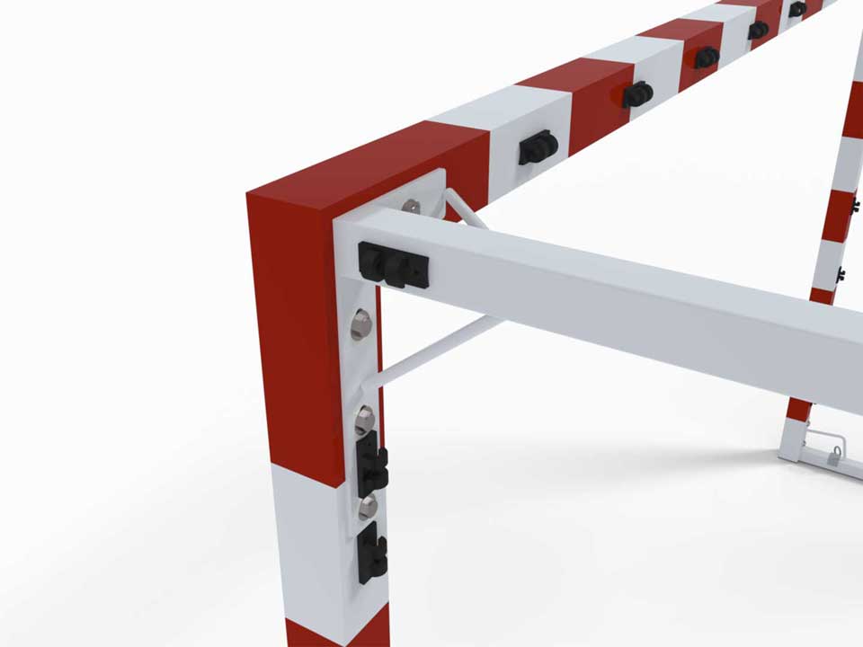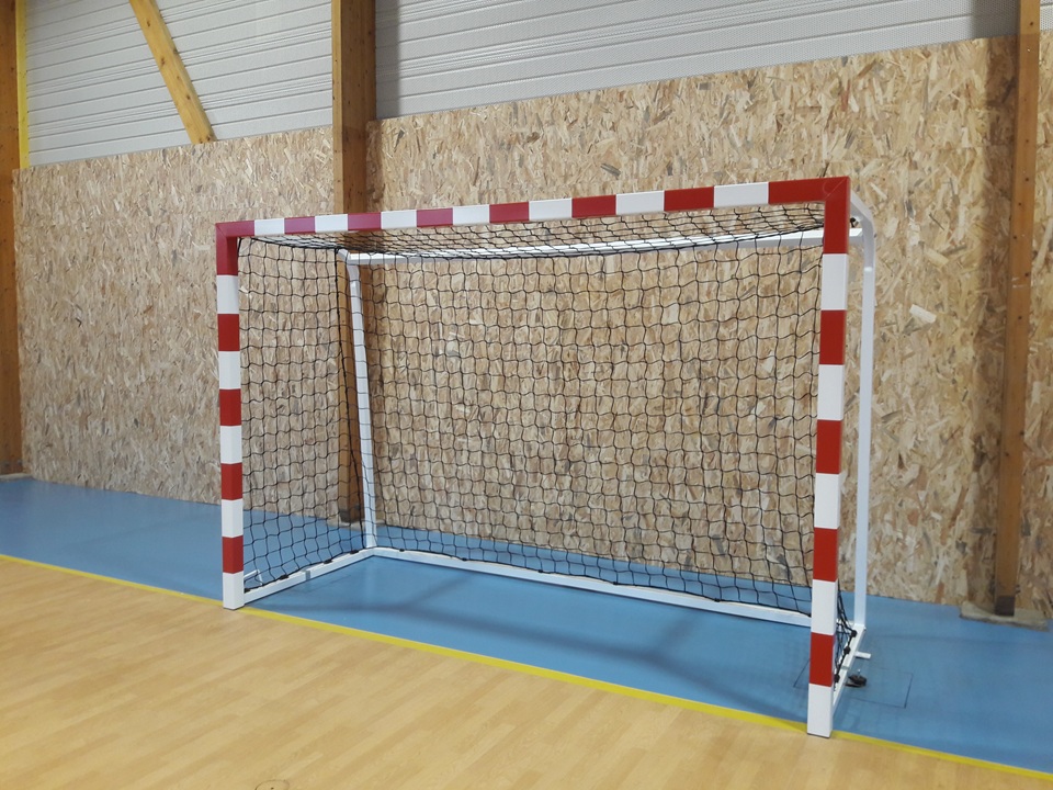 To comply with standards, the goal must be equipped with an internal catch net for competition handball goals.