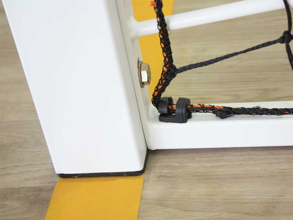 To comply with standards, the goal must be equipped with an internal catch net for competition handball goals.