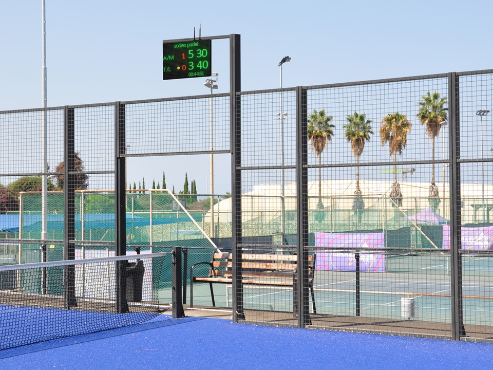 - Accessories : Control bracelet (Support scoring for padel, tennis & pickleball) ; Tripod adapter (635 x 30 x 100mm) ; Black bag to carry scoreboard (700 x 530 x 210mm).