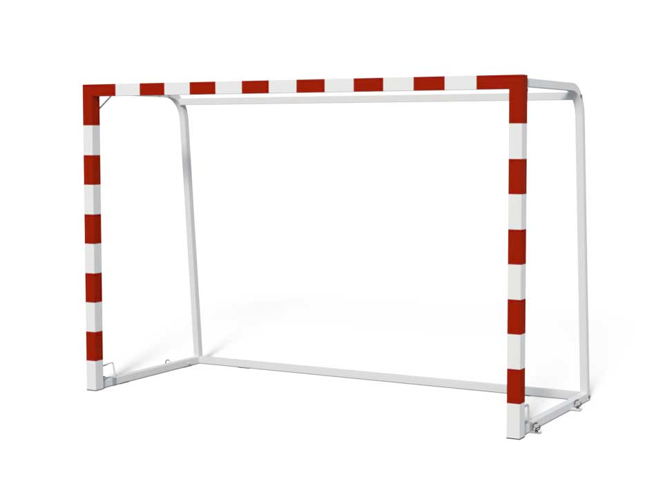 | Optimal rigidity thanks to fully welded front frame | Painted in red and white (no adhesive) on all 4 sides of the goal | Rubber pads do not damage the ground and stabilise the goal on uneven ground | Sturdy rear frame. Backbars + high and low stabilization bars in 50x50mm |