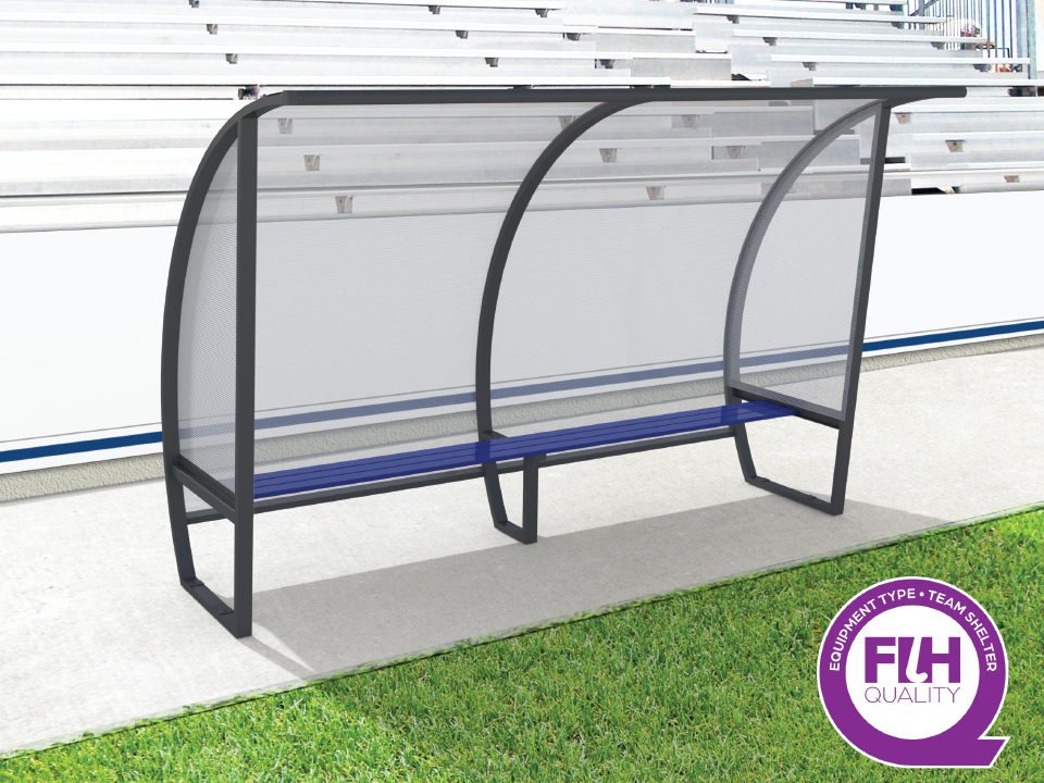 Team shelter 2.0m height to accommodate staff and substitutes during game. Aluminium frame with polycarbonate protection, 1.0m long for 2 players.