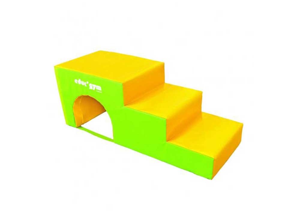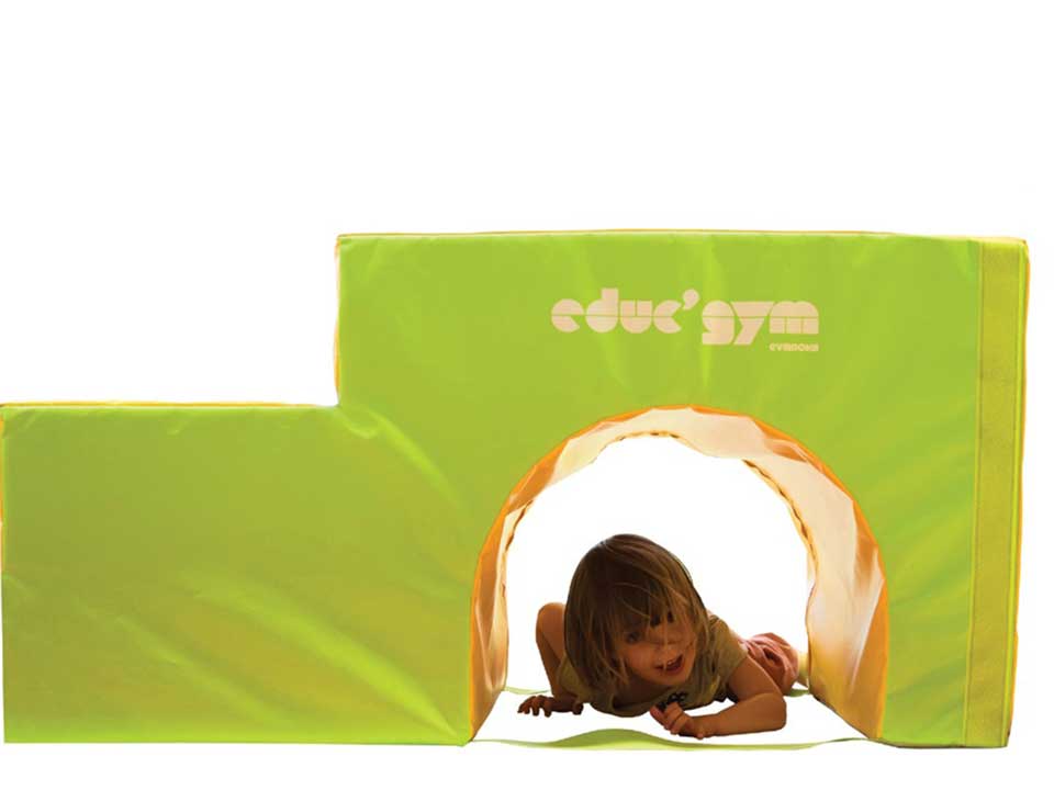 Foam module enables various play activities to be set up to encourage the development of coordination and balance in young children. The module can be used alone, in combination with other modules in the same range or with the wooden range. Designed for children from 18th months to 6 years. This multi-shape module combines a tunnel with steps and provides numerous options useful for developing motor skills (crawling, jumping, etc.). Used together with an inclined module it can be used to practice all rotations and can convert into a slide!