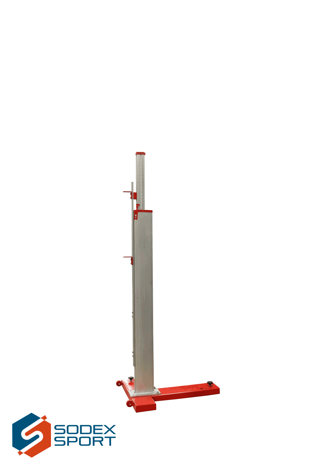 IAAF certified high jump posts. d 90mm aluminium. Height up to 2.5m. Steel heavy base in a drop of water shape provides excellent stability.