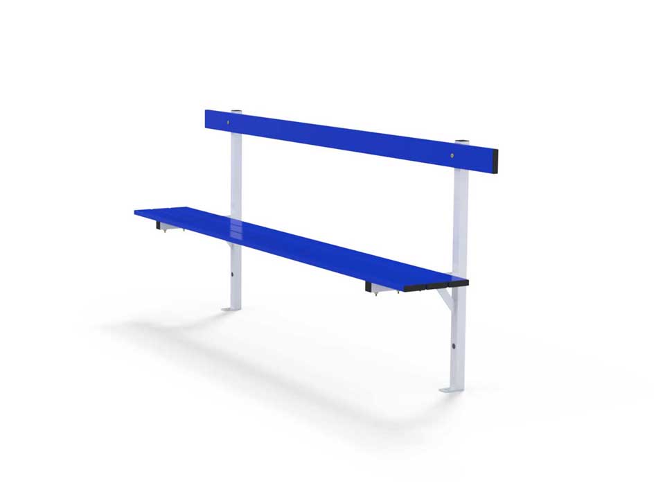 Aluminium peg rail with 4 plastic coat pegs per meter, blue powder coated.