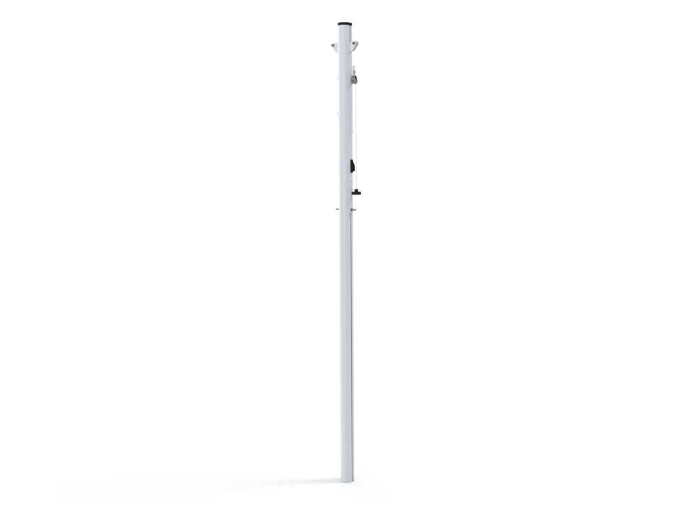 The socketed training volleyball central posts are made out of Ø90mm aluminium, white powder coated.