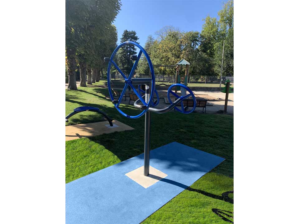 New outdoor fitness range conform to European Norm NF EN 16630. The main frame made of zinc plated steel with powder coated.
