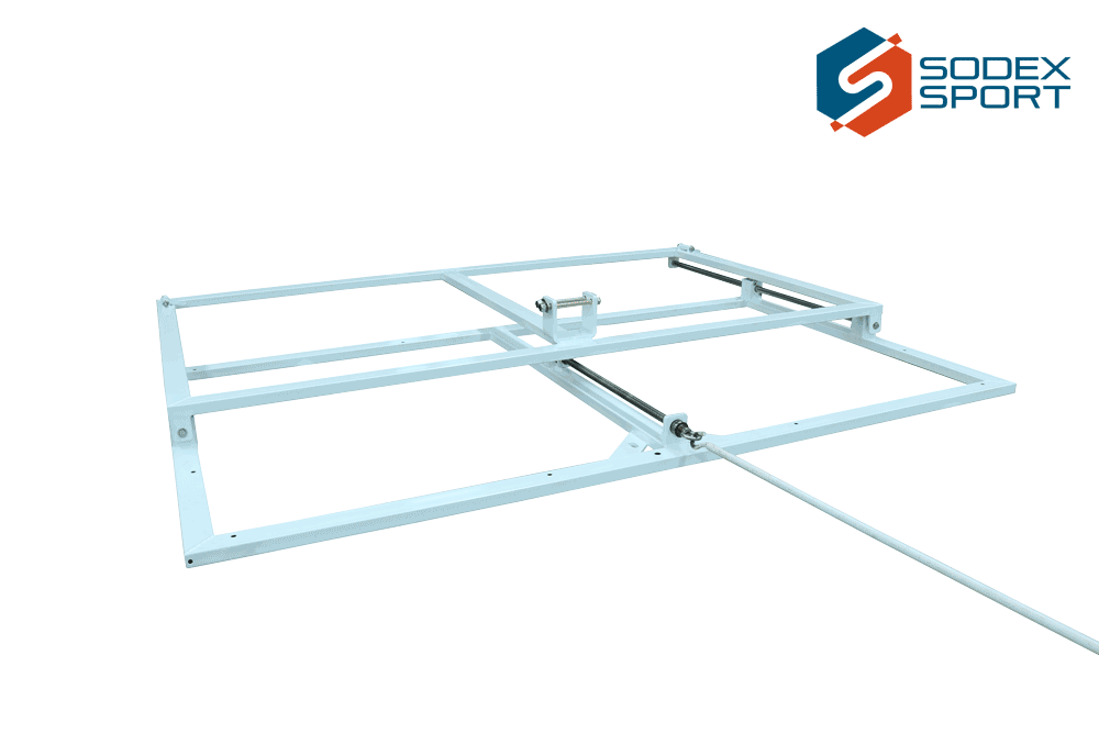 Crank handle for operating height adjustment system on wall mounted basketball goals equipped with a worm screw mechanism. This model is also designed for use with our mobile basketball goal. The handle is 1.65m long and has a hook at the top end.