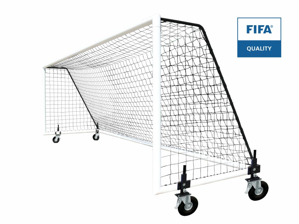 FIFA-certified 11-a-side football goal | 24 x 8ft (7.32 x 2.44m) | 100 x 120mm aluminium tube | Integrated 360° wheel kit