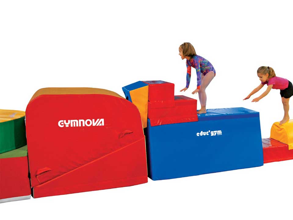 Foam vaulting table. For learning jumps in a reassuring environment 4 stackable elements to create different heights and angles, including regulatory heights.