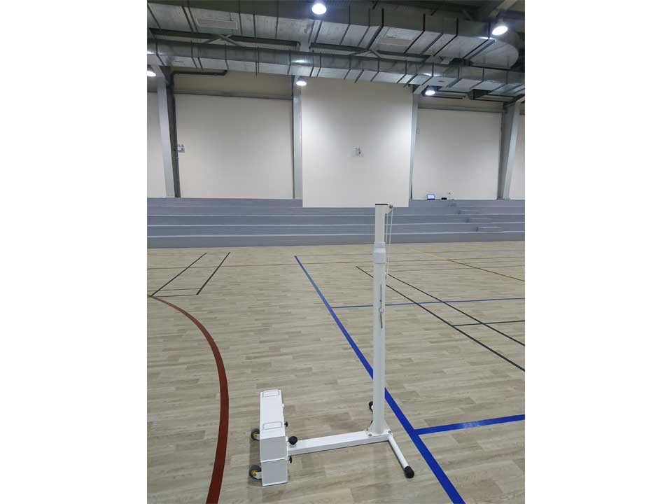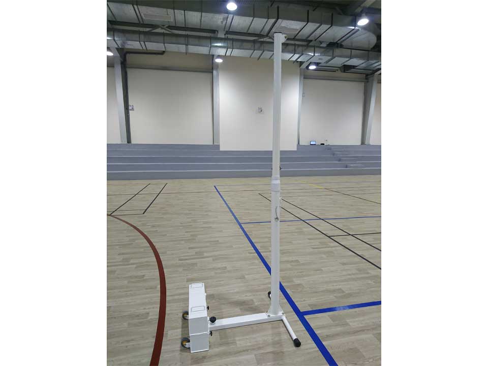 Galvanised steel mobile volleyball posts. With empty counterweight.