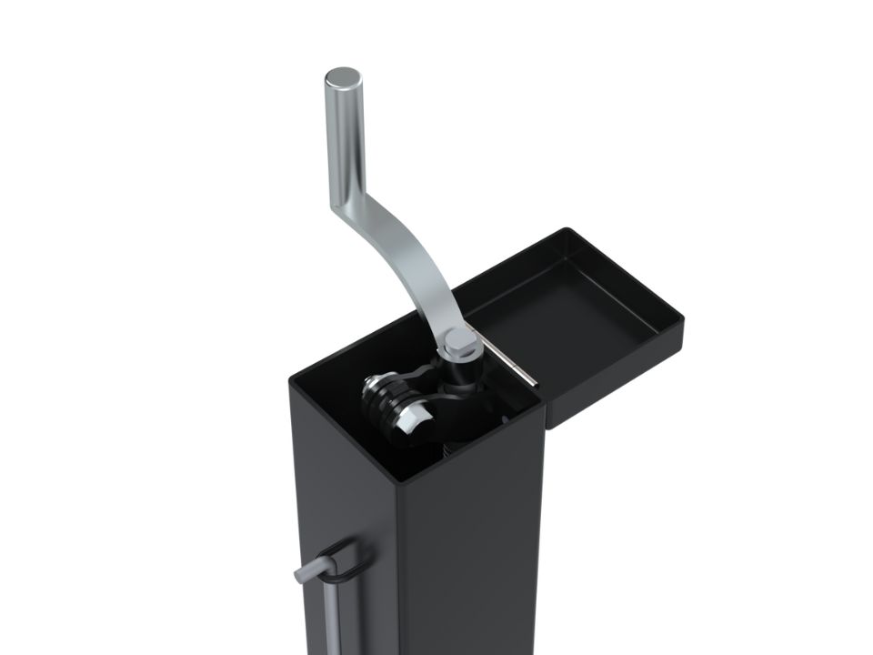 Designed to be bolted to the ground thanks to its 250mm x 250mm baseplate.