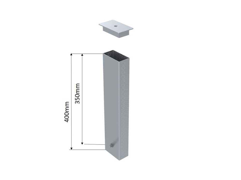 Sockets in galvanised steel for handball goals with 40mm x 80mm cross-section uprights.