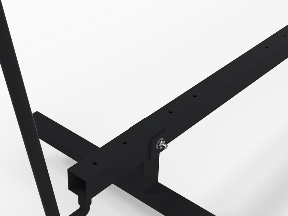 - Steel frame, black powder coated. Wheels are mounted below for easy mobility