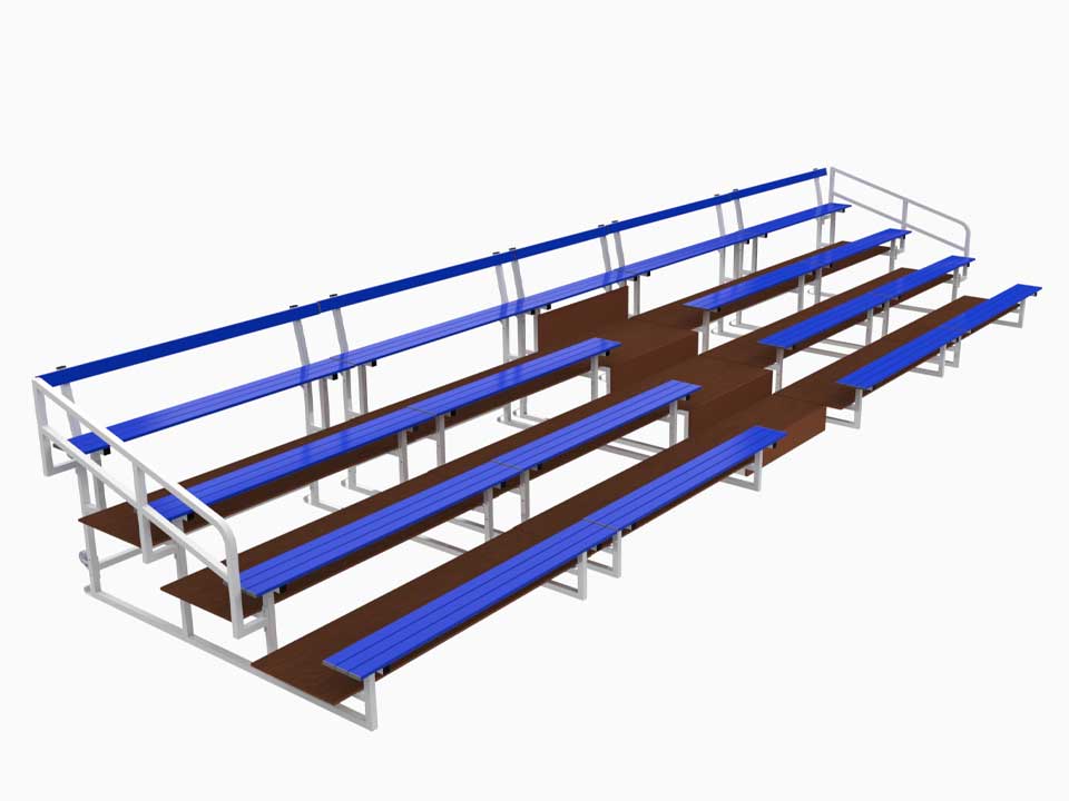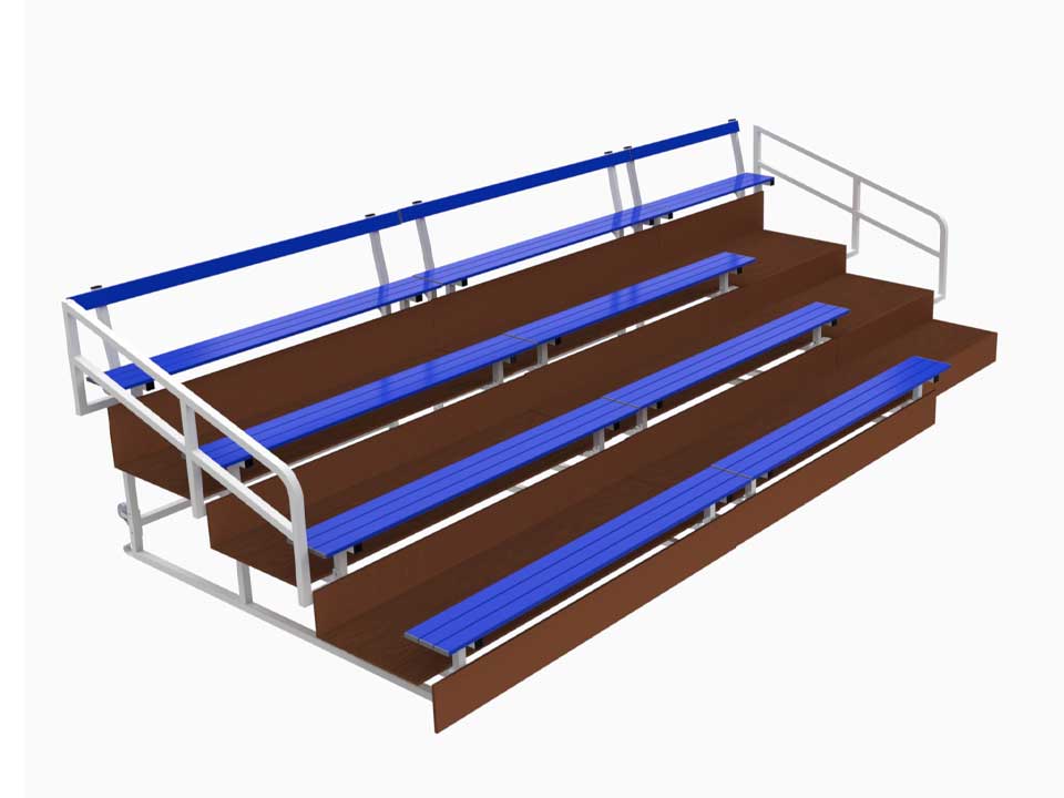 The handrail of mobile standard bleachers used with 4 rows benches blocks.