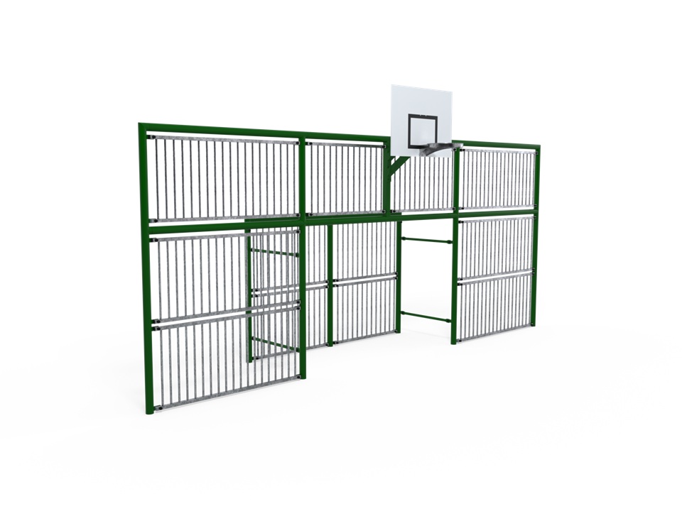 Multi-use goal with ball-stop fencing. In galvanized steel, Ø90mm socketed goals, with an anti-corrosion coating.