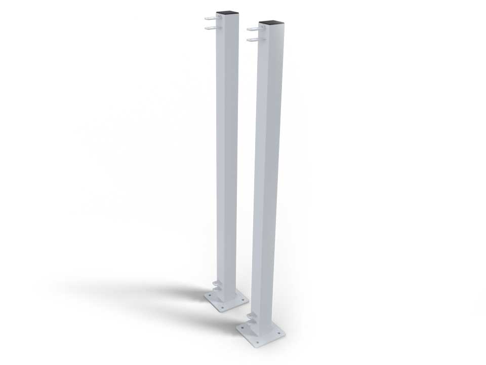 The posts are made out of white powder coated steel with plate to be fixed on the floor.