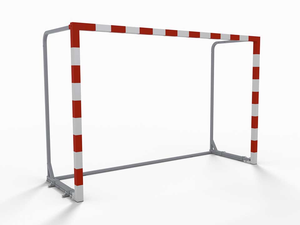 When no wall is available or the runback is too important for the goal to be fastened, two freestanding vertical support posts are installed to enable installing the goal.
