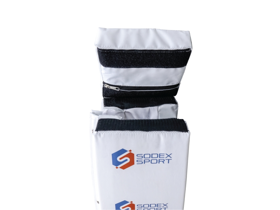 ![]() 1. The design can be customized to fit any padel post. | ![]() 2. The top section is removable, allowing to tighten or loosen the net without having to remove the padding. |