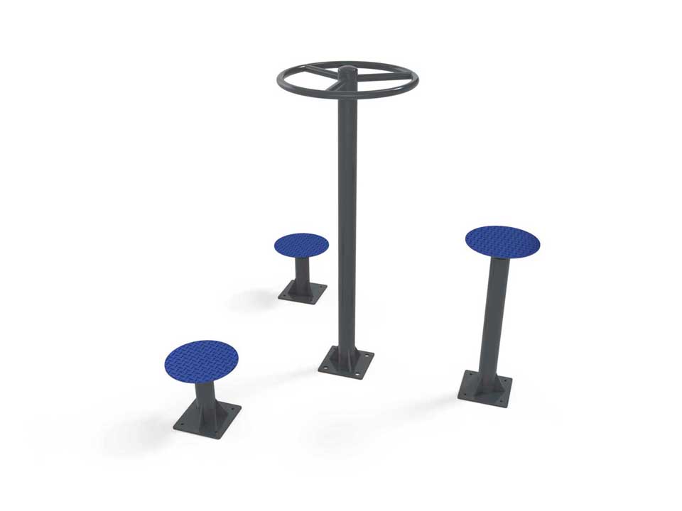 New outdoor fitness range conform to European Norm NF EN 16630. The main frame made of zinc plated steel with powder coated.