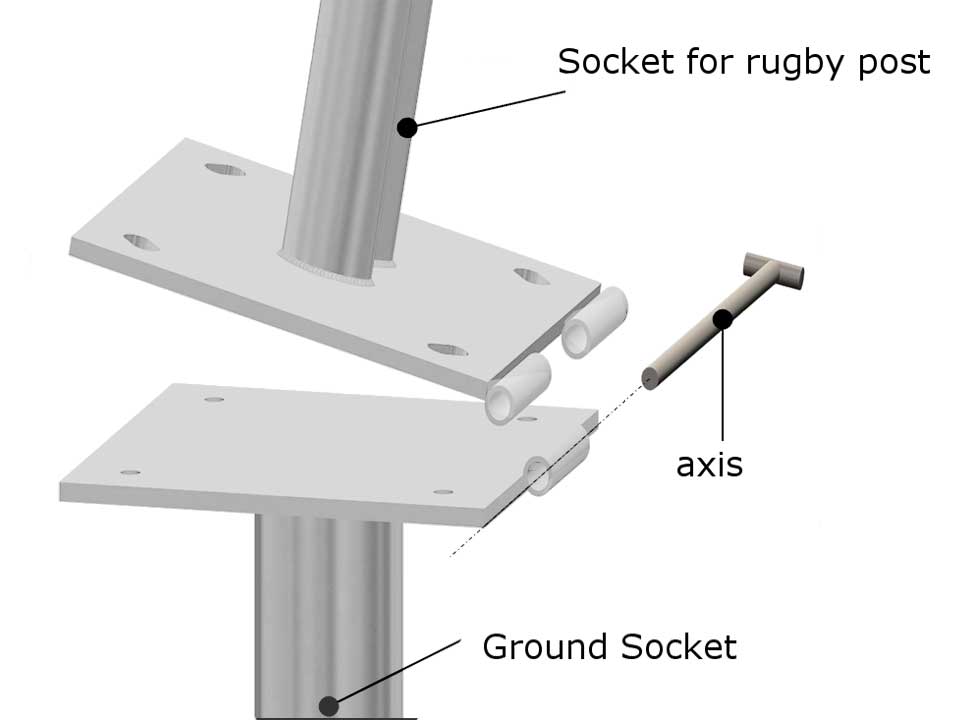Sockets for rugby uprights. Designed with a hinge design to ease installation and maintenance of goal posts.