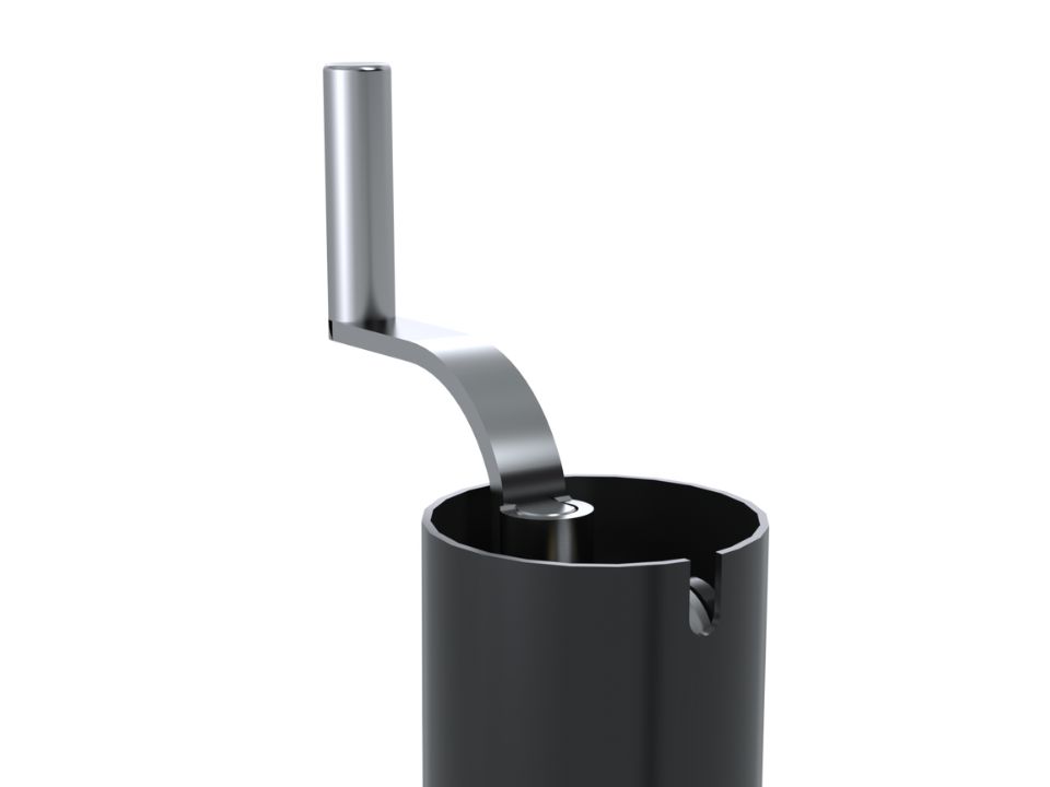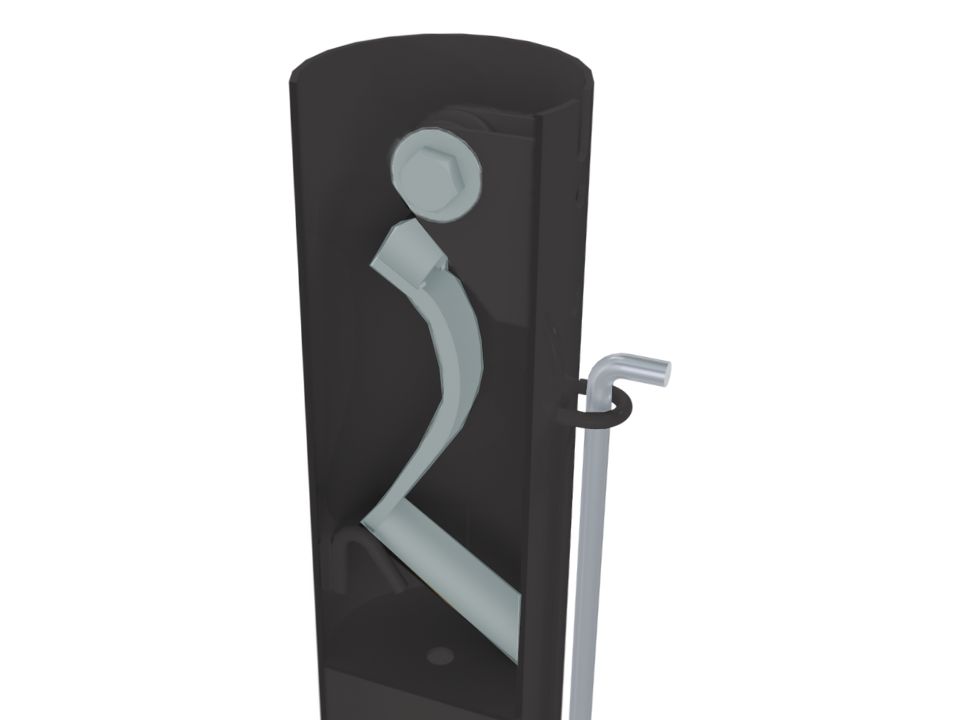 Socketed tennis posts in black powder coated galvanised steel with Ø90mm round cross-sections. Internal net tensioning winch, sold with crank handle.
