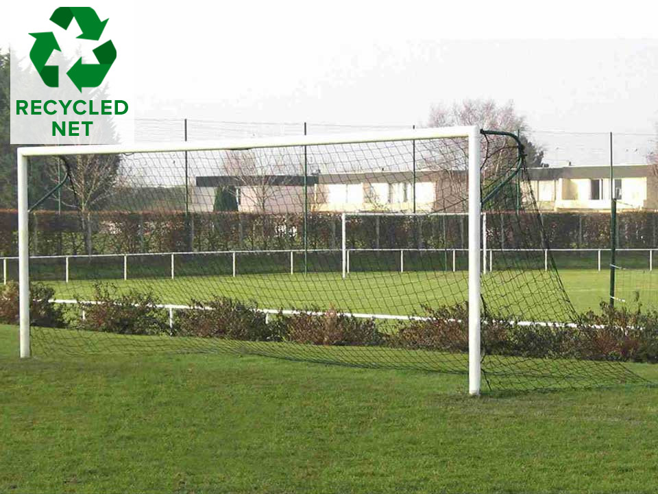 Standard profile football junior recycled net, in Ø3.0mm high density polyethylene anti-UV treated braided twine, 120mm single mesh.