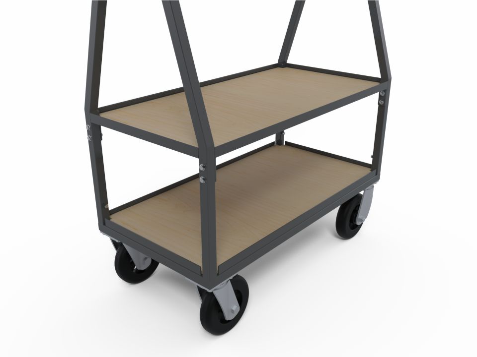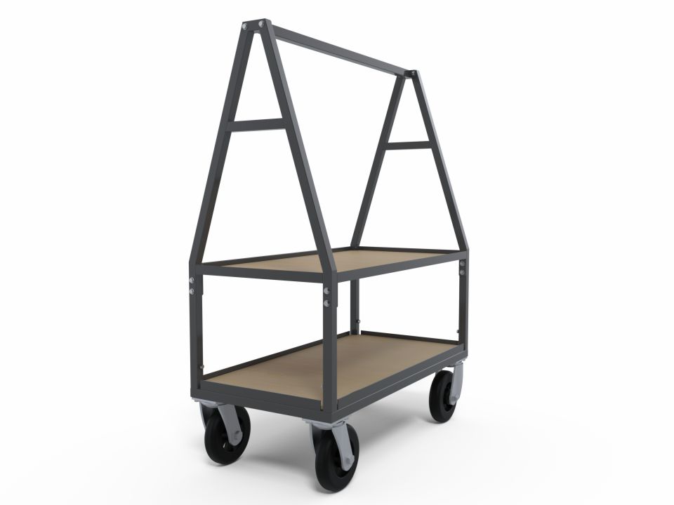 Starting block cart. Made out of galvanised steel. With two levels of storage for paddles and other accessories.
