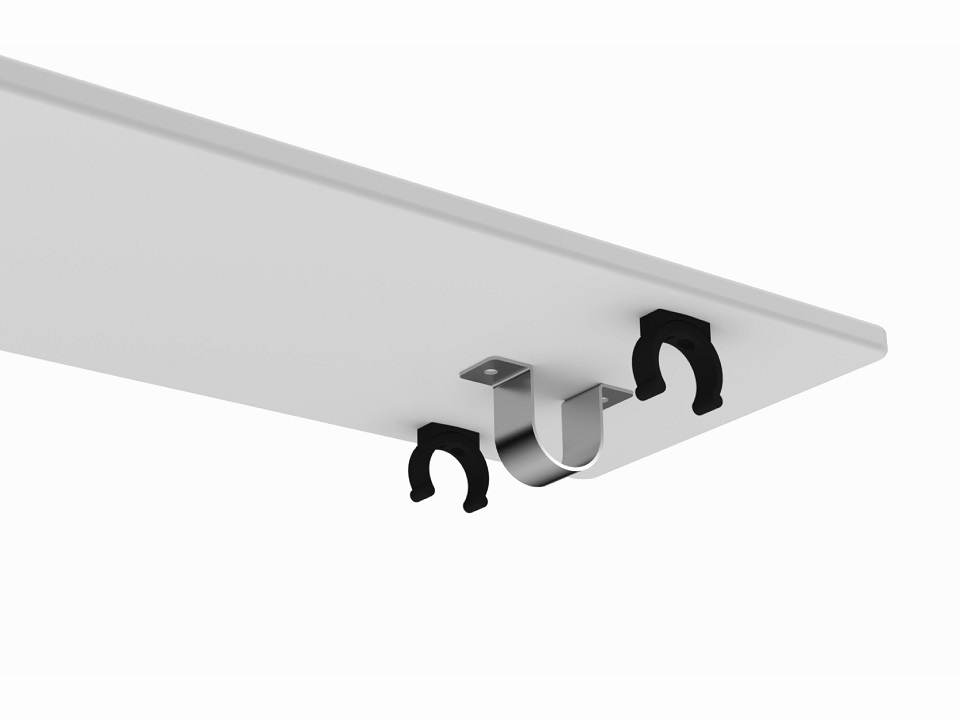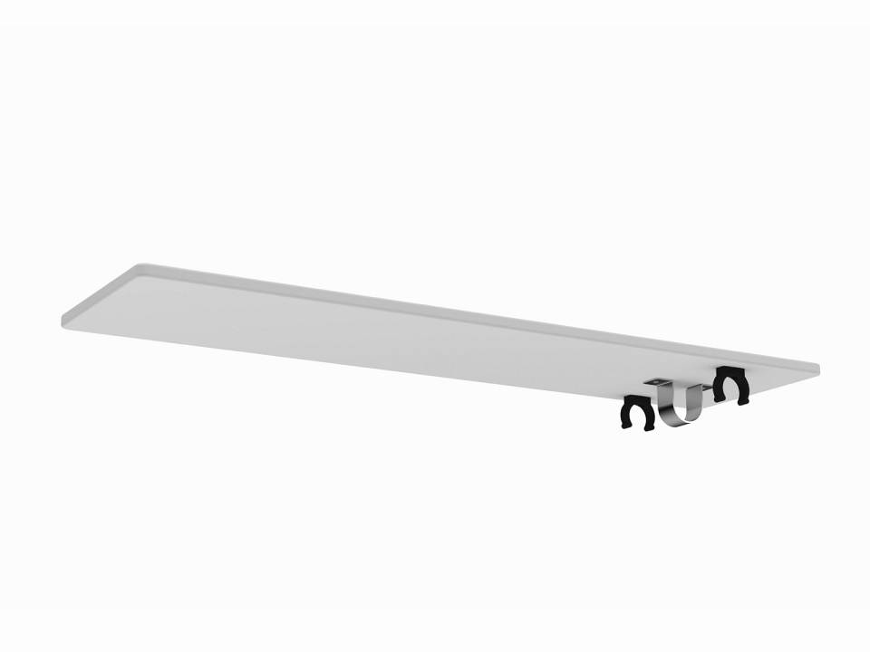 A removable table for the umpire chair S25531 . The underside of the table has plastic tube clips and steel tube clips.