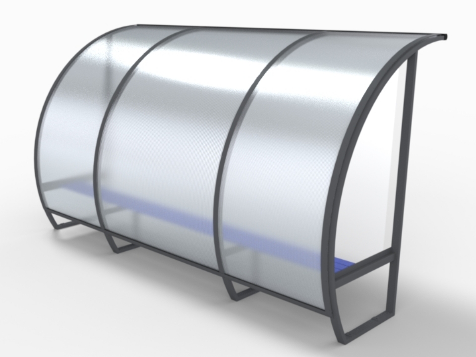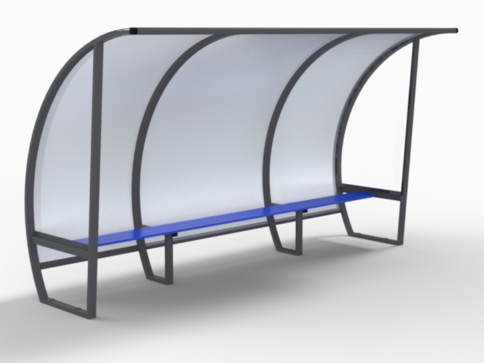 Team shelter height 2.0m with polycarbonate protection, 3.5m long for 7 players
