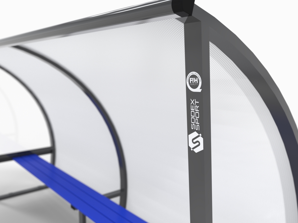 Team shelters are made of powder-coated aluminum profiles. All sides are impact resistant in order to protect players from balls or projectiles.