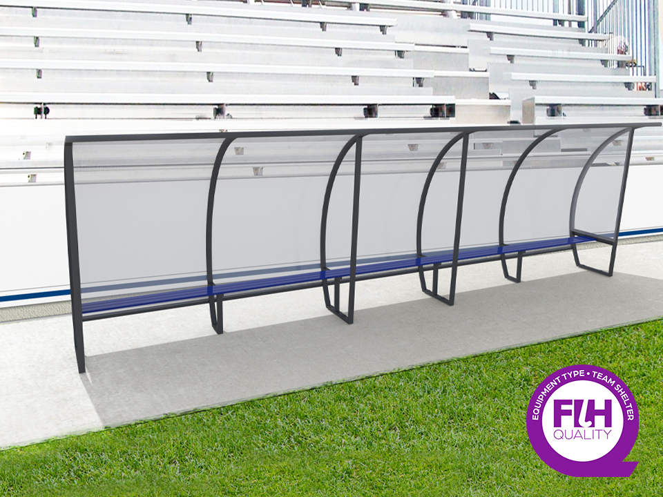 Team shelters are made of powder coated aluminium profile. All sides are impact resistant in order to protect players from balls or projectiles. Top bar with curved profile to prevent head injury and hid fastener.