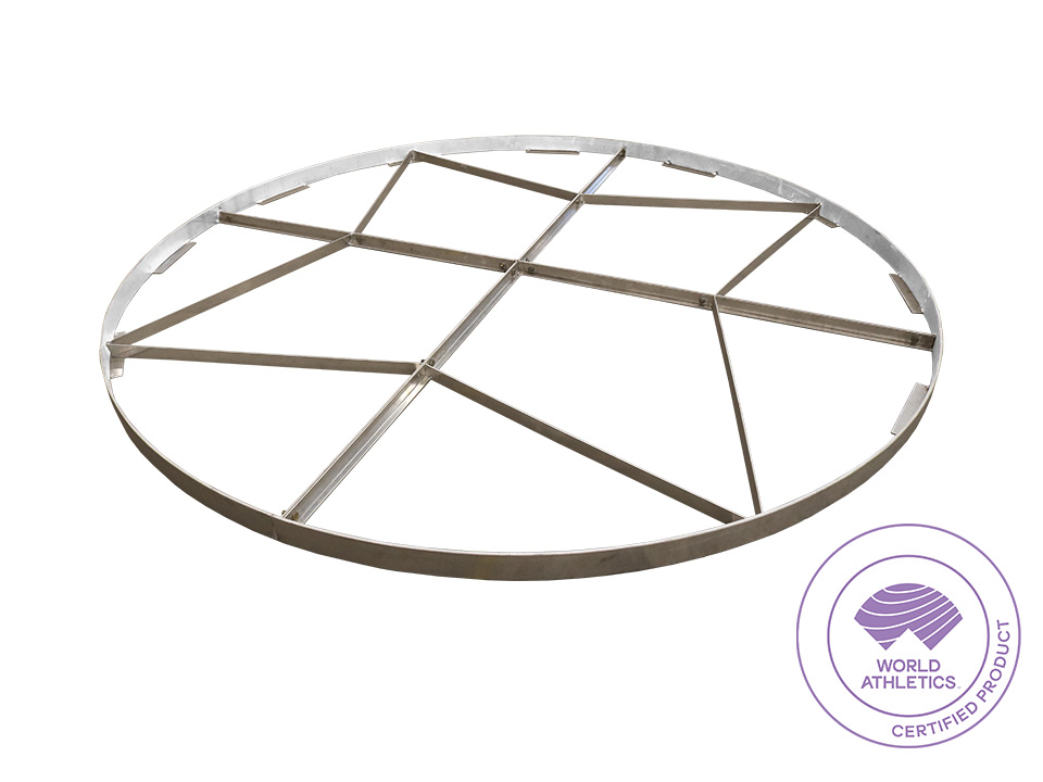 Aluminium hammer and shot put circle with the IAAF/World Athletics certification.