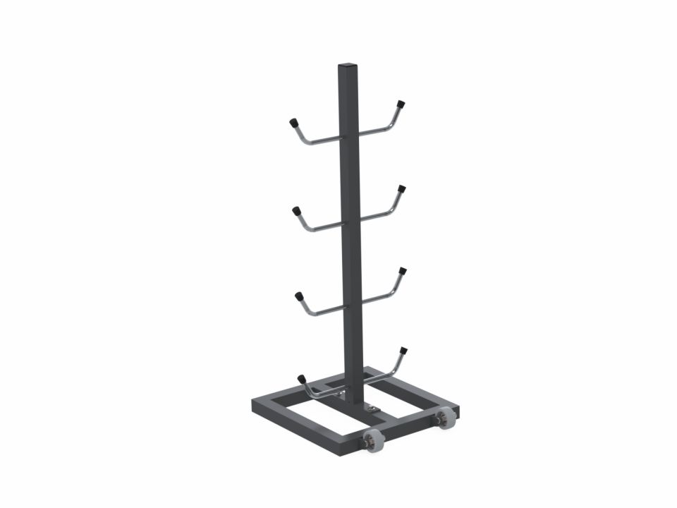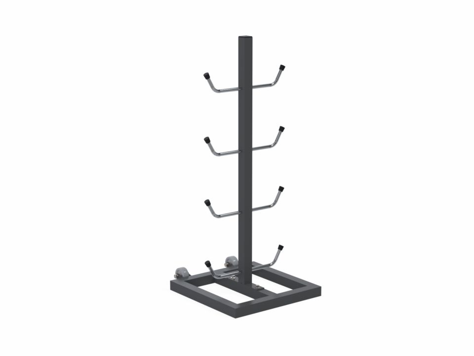 Vaulting pole support rack. Rubber end-caps and protective sleeve on tubes prevent injury and damaging equipment.