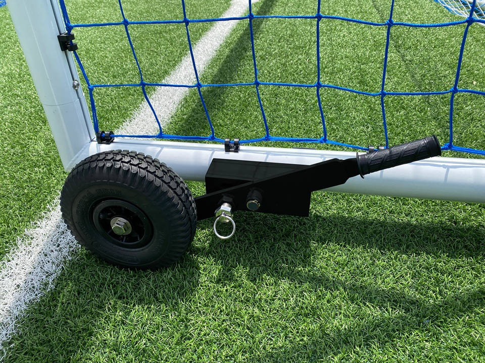 This kit is composed of a pair of wheels, to be fastened to freestanding soccer goals to improve mobility.