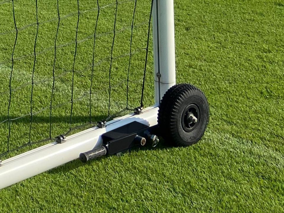 ![]() 1. Clampling plates ensure the assembly’s strength and extends the product’s durability. | ![]() 2. A self-locking handle helps lift the goal up from the ground, making it mobile. | ![]() 3. These large pneumatic wheels allow great mobility of the goal on all surfaces. |