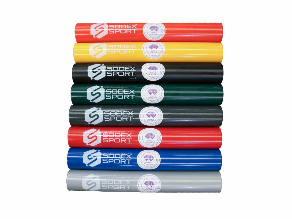 World Athletics-certified competition relay batons. Diameter Ø40mm, 290mm width.