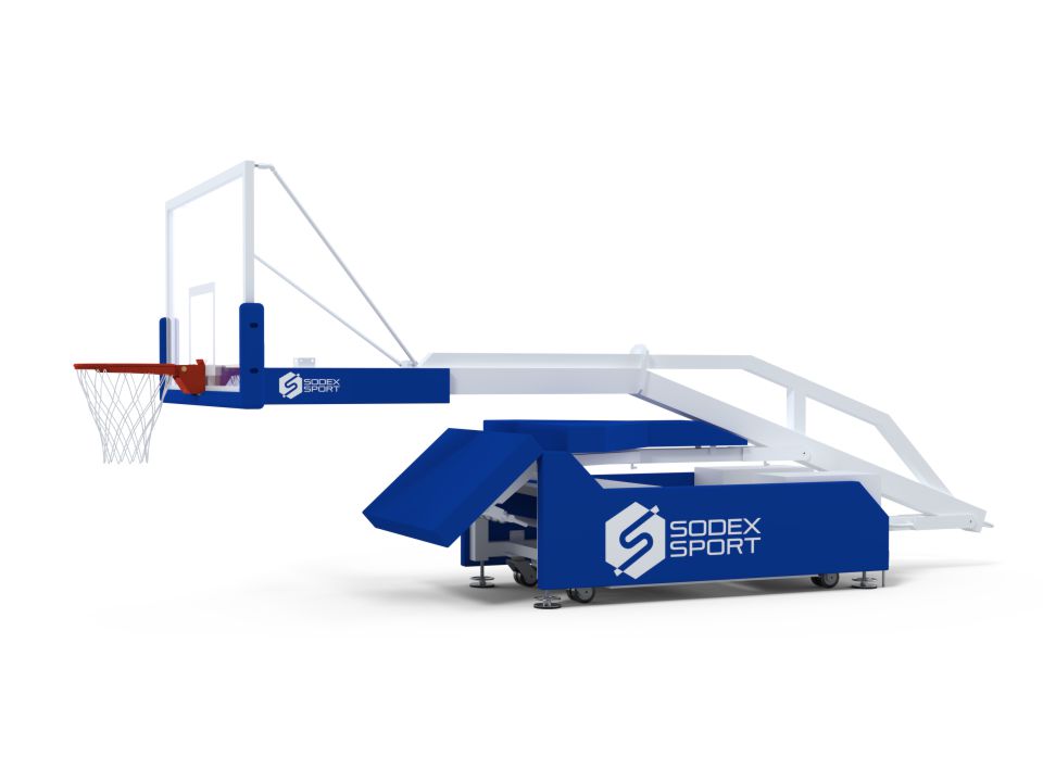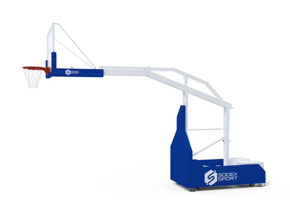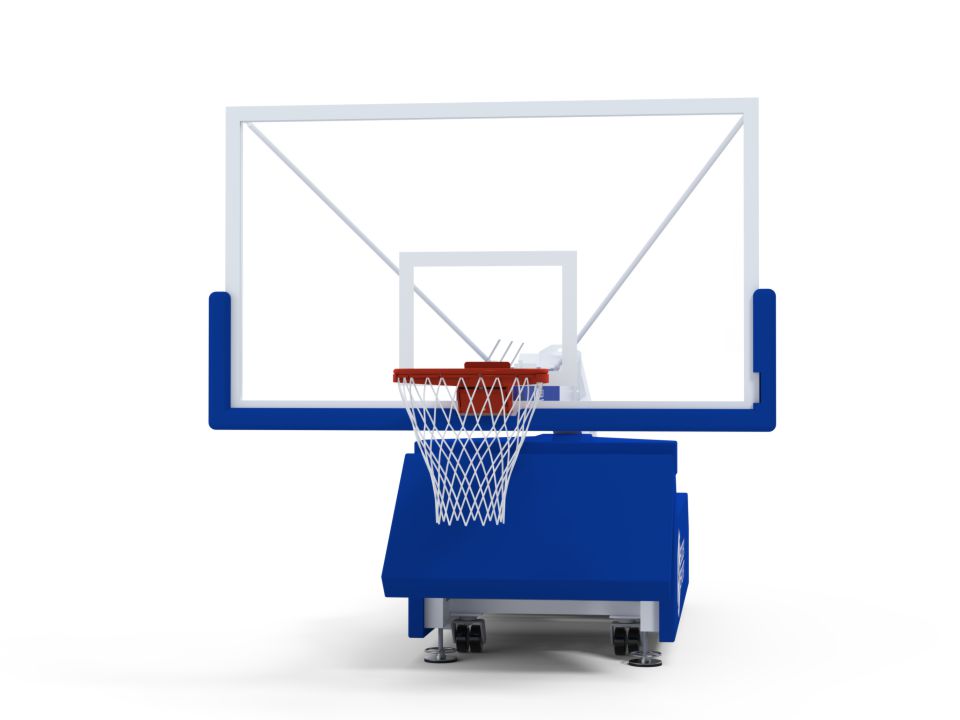 The range of mobile basketball backstops is built for high-level competition. The main frame is white powder-coated heavy-construction steel. The extension spring mechanism is designed for balanced and effortless lifting/lowering of the uni The adjustable backboard braces and support allow for setting the desired height and angle of the backboard.