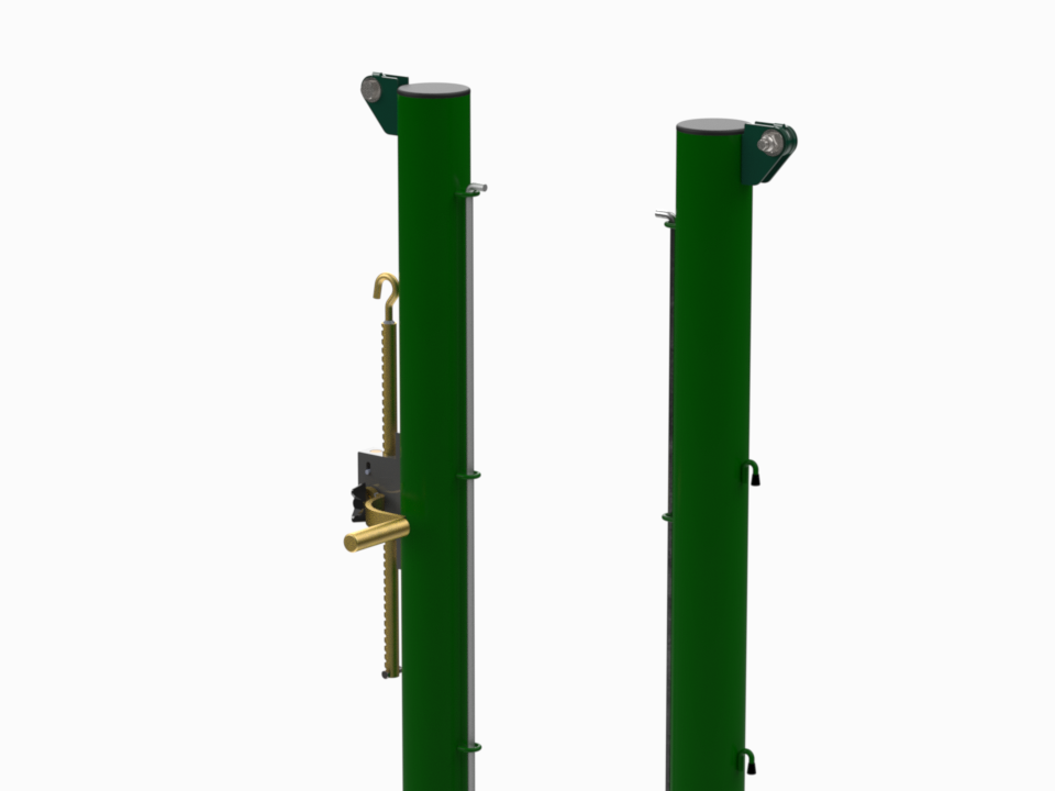Galvanized steel tennis posts with external winch, round and Ø76mm socketed design