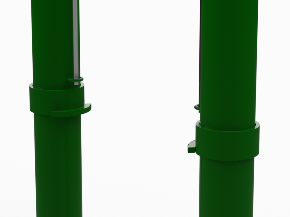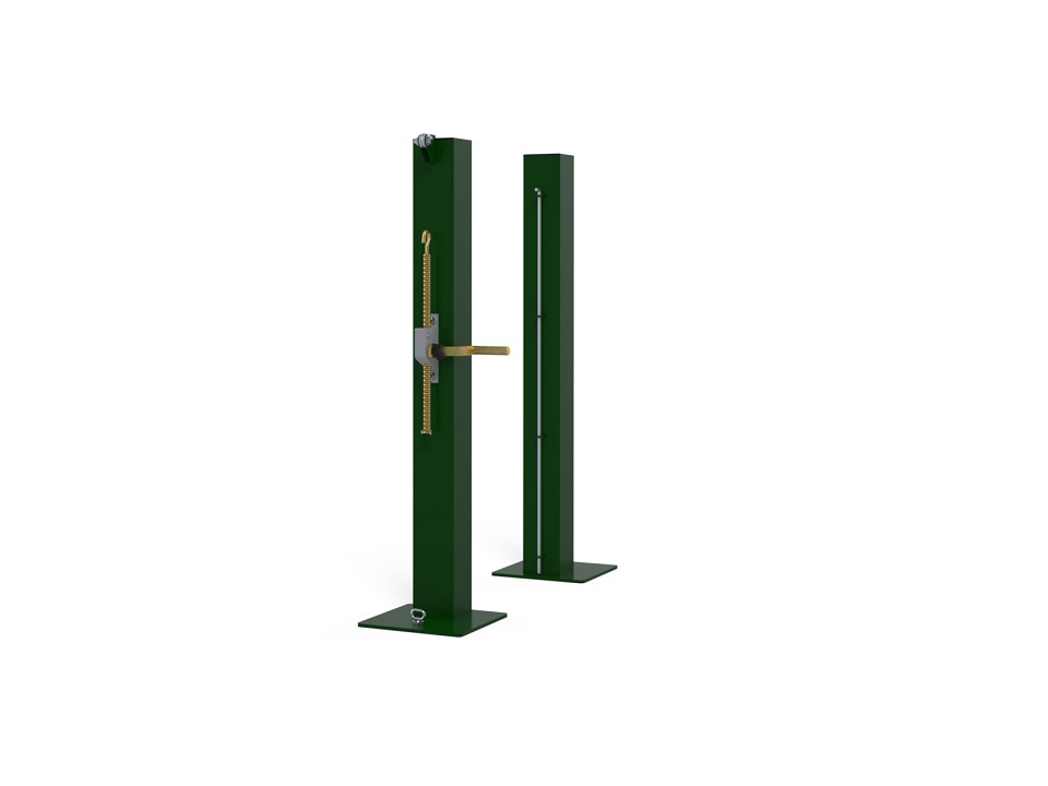 Socketed tennis posts in green powder-coated galvanized steel with Ø76mm round cross-sections.