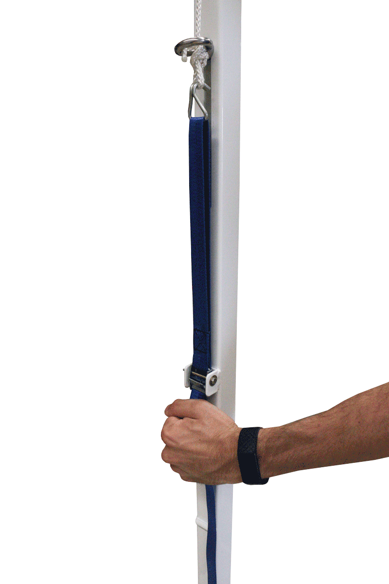 Easy net tensioning thanks to the strap and the clam-cleat |