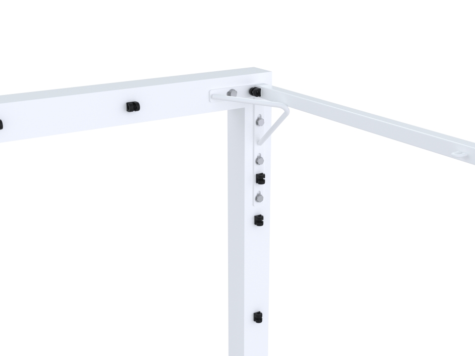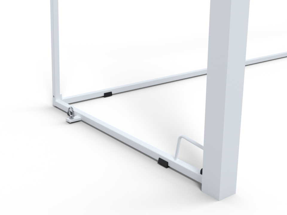 The side frames and back bar are made out of galvanized white powder-coated steel 30mm x 30mm.