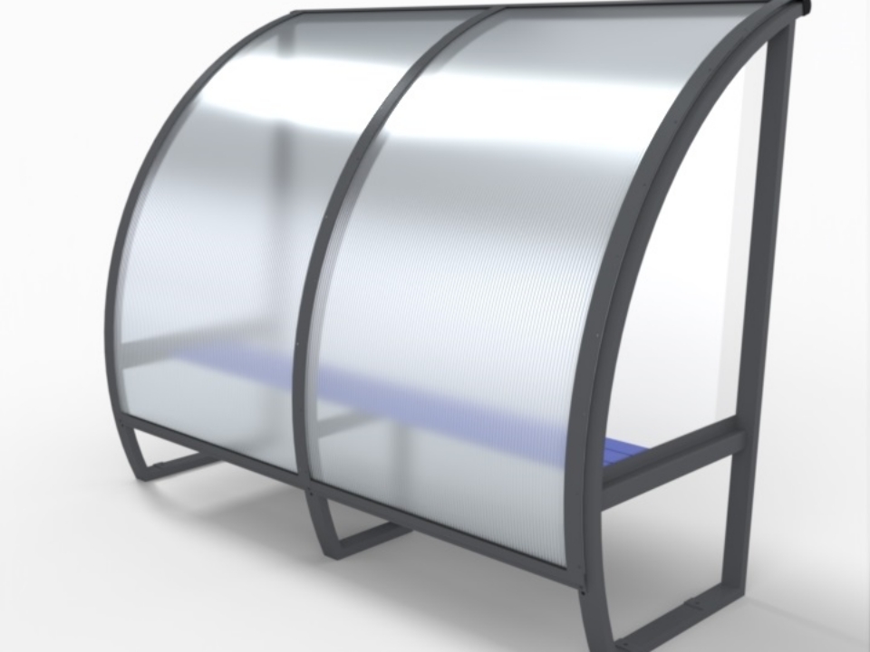 | 1. Frame and seat 100% aluminium | 2 + 3. Roof panels are slotted at the top and bottom into grooved bars and held down along their entire length with plates | 4. Top bar with curved profile to prevent head injury and hide fasteners | |