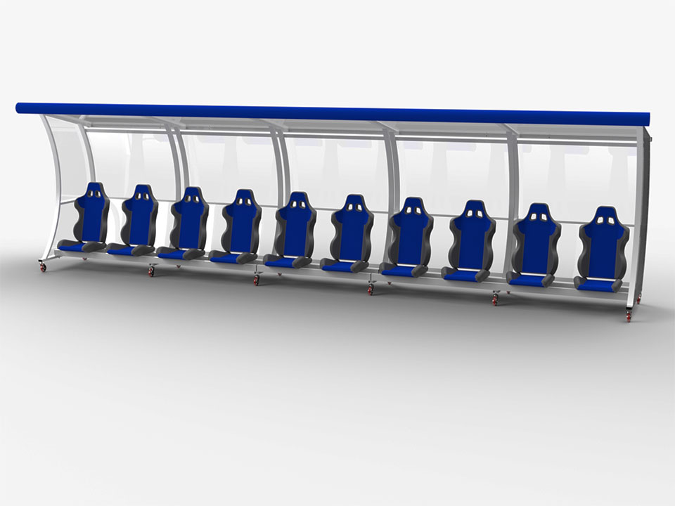 VIP Team shelter height 2m with polycarbonate protection, 7.5m long for 10 people