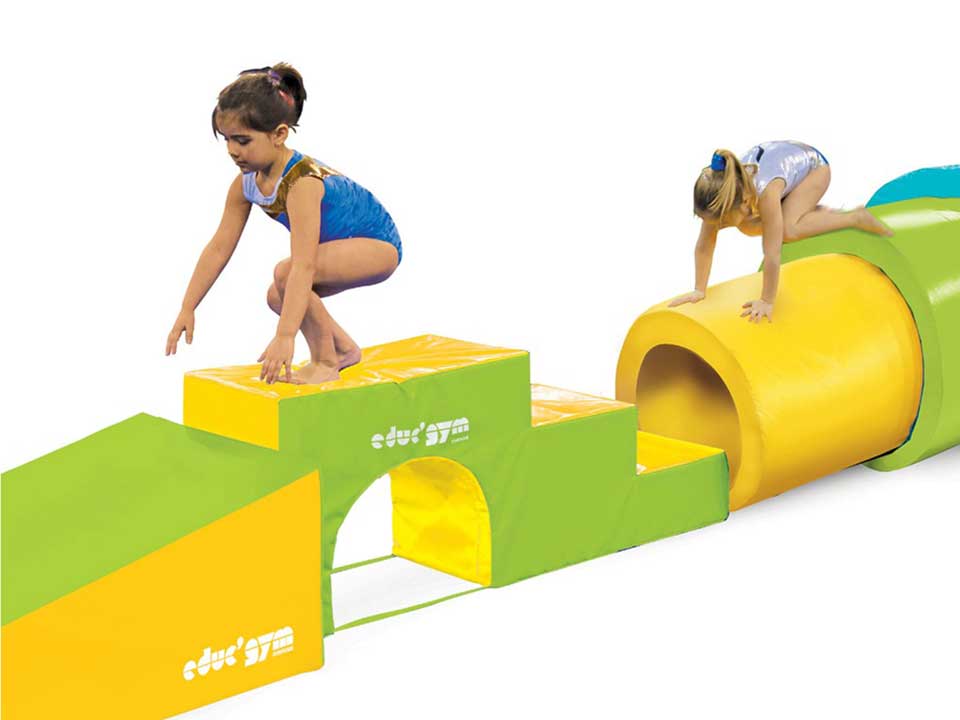 Foam module enables various play activities to be set up to encourage the development of coordination and balance in young children. The module can be used alone, in combination with other modules in the same range or with the wooden range. Designed for children from 18th months to 6 years. This multi-shape module combines a tunnel with steps and provides numerous options useful for developing motor skills (crawling, jumping, etc.). Used together with an inclined module it can be used to practice all rotations and can convert into a slide!