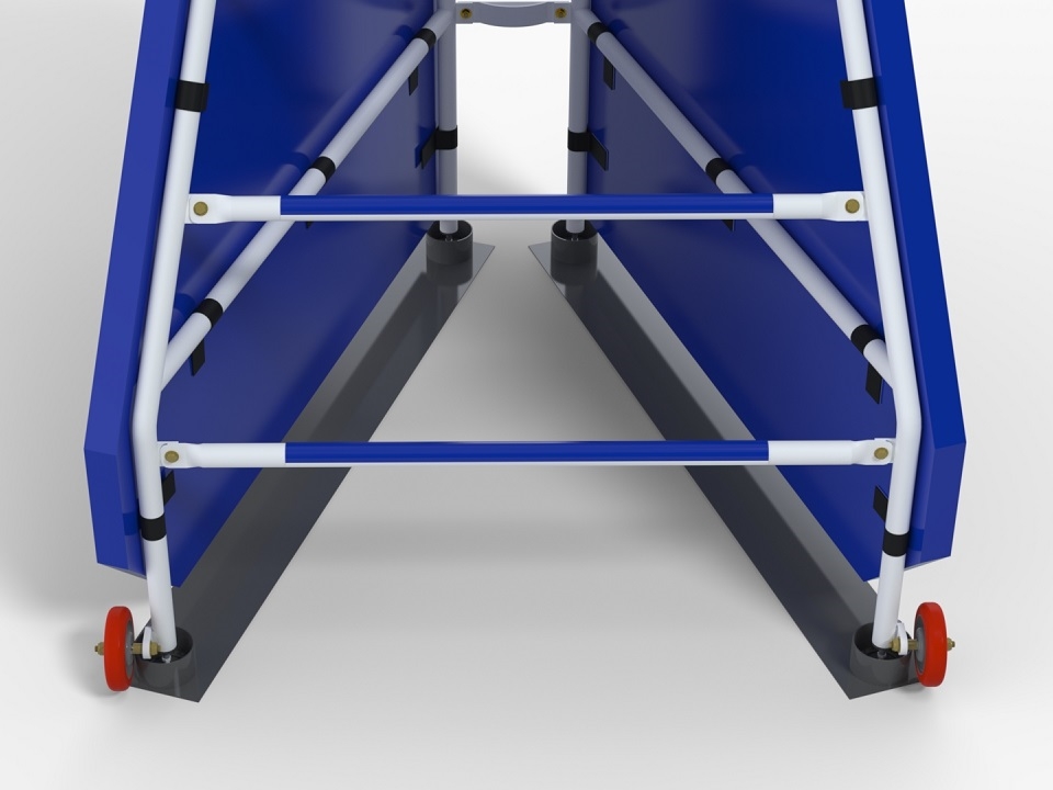 With Ø90mm tubes and flat bars in galvanized steel to be placed on the sand.