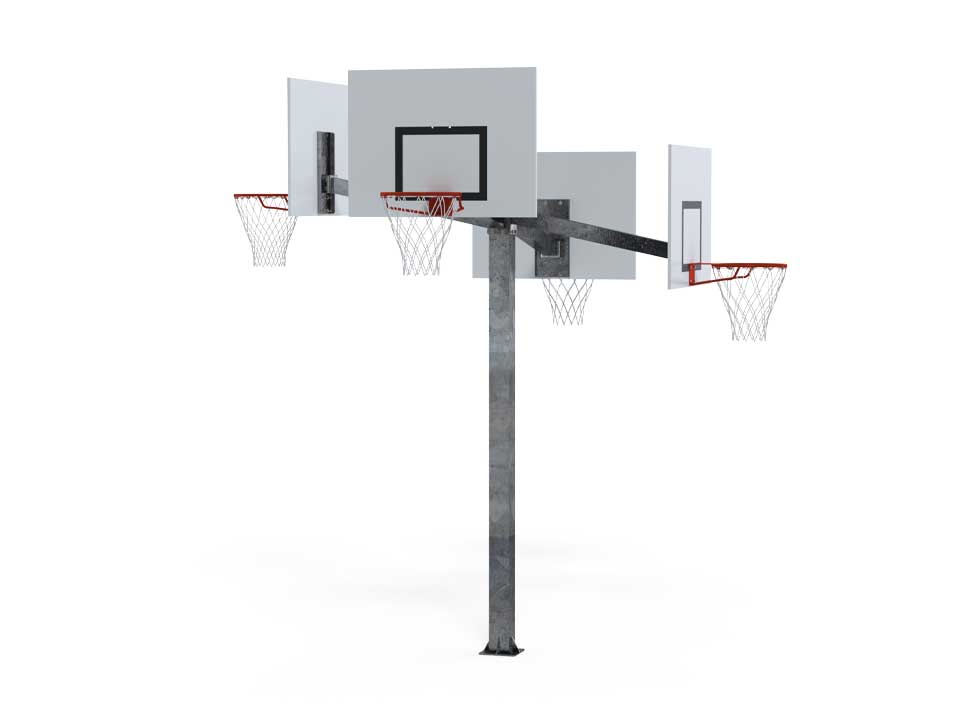 Basketball goal in hot-dip galvanised steel with 100mm x 100mm square cross-section.