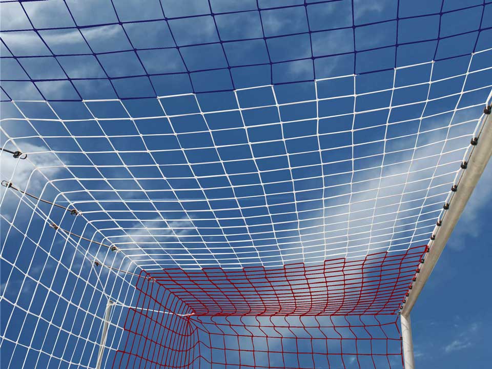 Football senior nets tri-colors, Ø4.0mm high-density polyethylene anti-UV treated braided twine, 145mm single mesh.